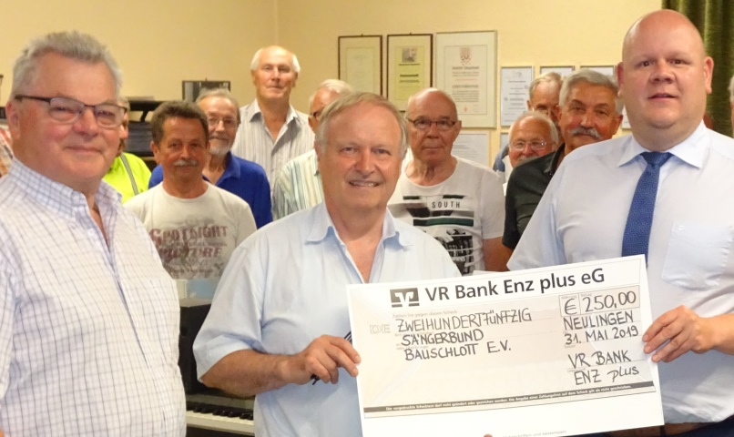 Die Sparkasse Pforzheim Calw stärkt dem Sängerbund Bauschlott in der Corona-Krise mit einer Spende den Rücken.