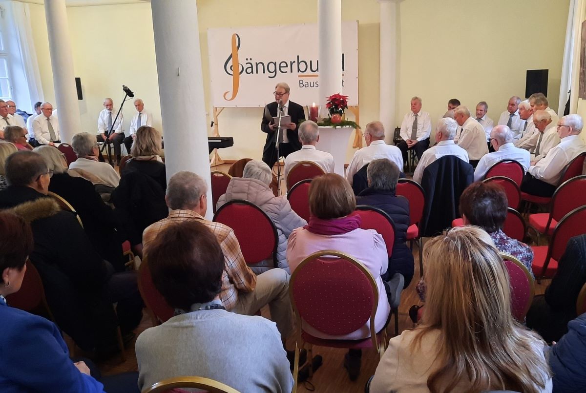 Zur Mittagszeit lud der Sängerbund Bauschlott am vergangenen Sonntag die Mitglieder und Förderer des Vereins zu einer Adventsmatinee in das Schloss Bauschlott ein. Der Männerchor unter der Leitung von Joachim Langnickel hatte dafür ein Repertoire zusammengestellt, das - passend zum 1. Advent - neun geistliche, nachdenkliche und auch beschwingte Lieder beinhaltete. Um es vorweg zu nehmen - der lange Applaus am Ende der Veranstaltung unterstrich, dass man gut ausgewählt und vor allem auch gut vorgetragen hatte.