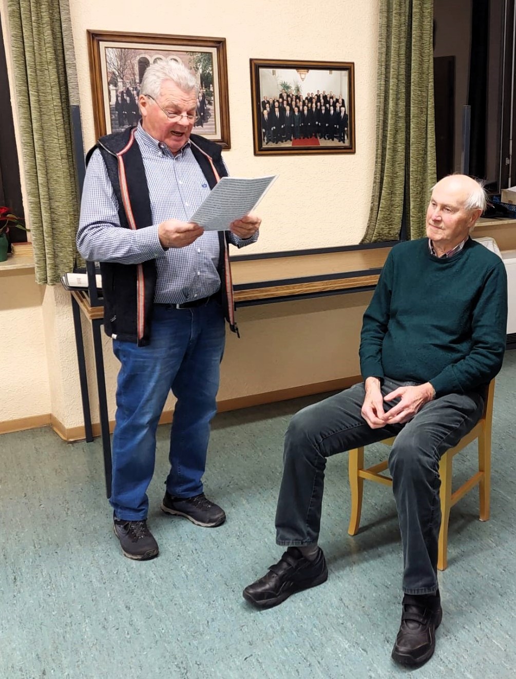 Du bist im Liederausschuss einige Jahre tätig und wir sind sehr froh über Dein langjähriges Chorwissen, das Du hier mit einbringst. Wenn man Dich braucht, bei einer Hocketse oder einem Auswärtsständchen, bist Du vorne mit dabei, als beruhigender Pol und Vorbild für viele. Dafür möchten wir Dir heute ganz herzlich Dank sagen.