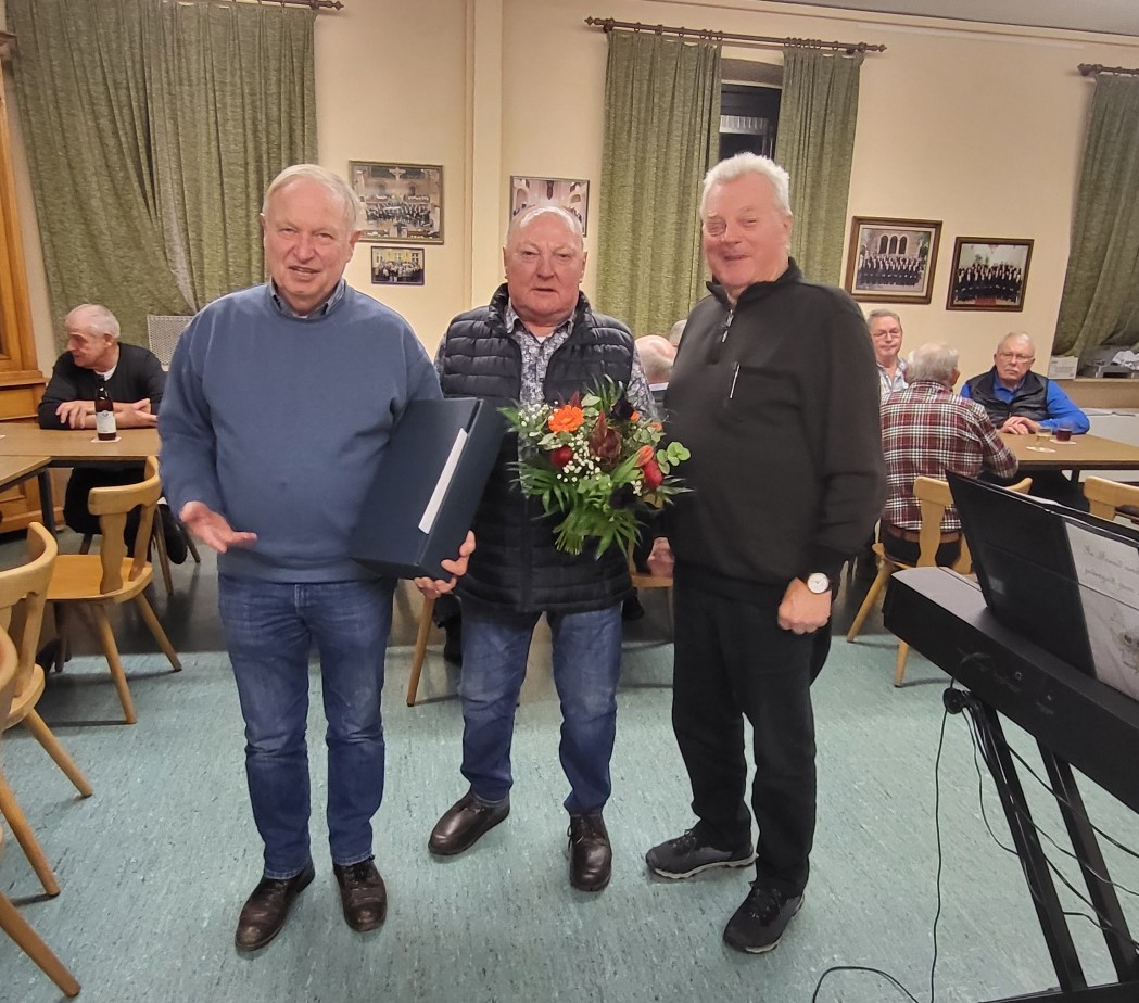 Wir alle vom Sängerbund möchten Dir heute zu Deinem Ehrengeburtstag, der am 05. Januar 2026 war, ganz herzlich gratulieren, viel Glück, Gesundheit und weiterhin viel Freude beim Singen im 1. Bass in unserer Sängerfamilie wünschen. Es freut uns immer wieder, denn es ist – und soll ja auch - etwas Besonderes, wenn wir als Chor einem Sängerjubilar, salopp gesagt, ein Ständchen singen dürfen. Zeigt es uns doch Dein großes Interesse zur Musik und zum Gesang, vor allem, was ganz wichtig ist,, zur Kameradschaft in Deinem, unserem Männerchor.