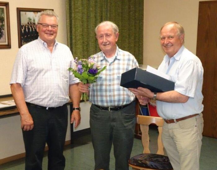 Du bist 1964, im Alter von 25 Jahren, dem Sängerbund als aktives Mitglied beigetreten und hast dann 12 Jahre bis 1976 gesungen. Danach kam eine Pause bis 1983. Aber seither verstärkst Du unseren Chor mit Deiner klaren Tenorstimme bis heute. Insgesamt singst Du nun somit schon seit 48 Jahren aktiv in unserem Männerchor. 1989 bist Du zum Ehrenmitglied unseres Vereins ernannt worden, 2004 wurdest Du für 40 Jahre und 2014 für 50 Jahre aktive Sängertätigkeit vom Badischen Chorverband bzw. Badischen Sängerbund geehrt.