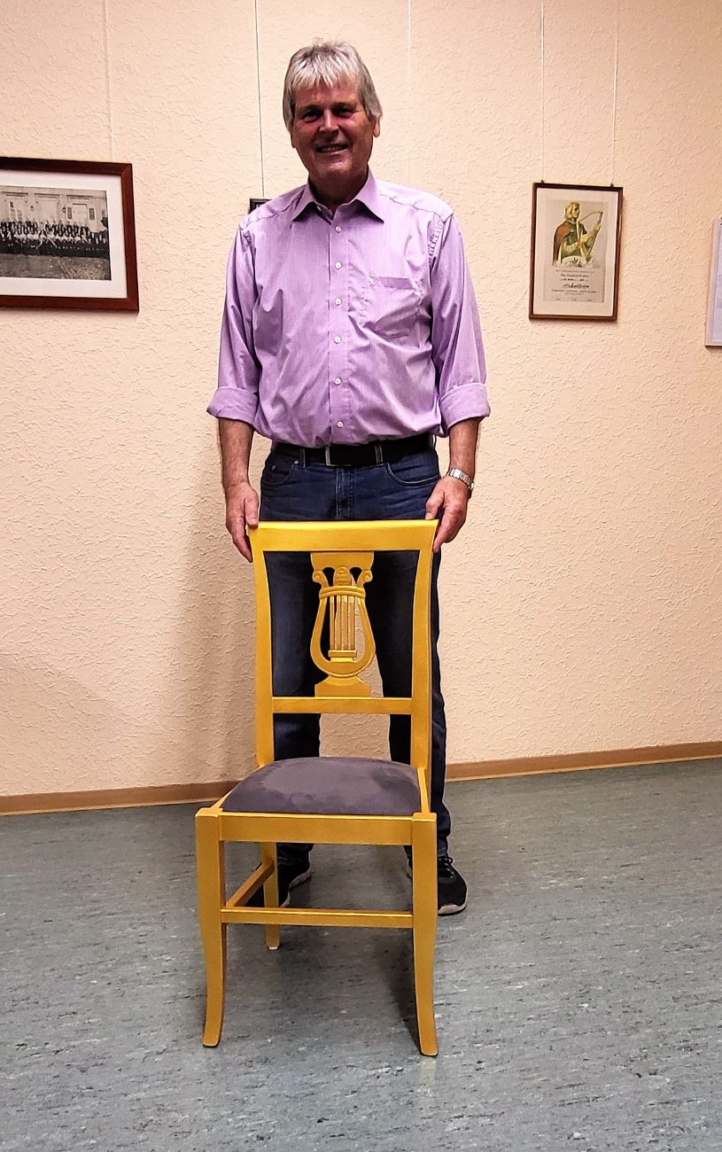 Lieber Jürgen, wir gratulieren von Herzen, wünschen Dir eine gute Gesundheit und viele fröhliche Jahre noch hier mit Deinen Sängerkameraden. Darüber hinaus freuen wir uns sehr, dass Du im Kreise unseres Vorstands einen festen Platz gefunden hast. Ich habe die wunderbare Aufgabe zu sagen, dass wir alle heute Abend eingeladen sind. Dein Lieblingslied "Ihr von Morgen" bringen wir Dir gerne zu Gehöhr. Ich bitte Dich vorne auf unserem schönen "Goldenen Sängerstuhl" Platz zu nehmen.
