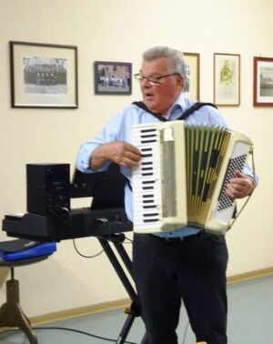 Peter Zimmermann ist nicht nur in Sängerkreisen ein Begriff. Bei vielen offiziellen und privaten Veranstaltungen taucht er mit seinem Akkordeon auf und sorgt für gute Stimmung, nicht zuletzt beim Angerfest im Zelt des Sängerbundes Bauschlott. Dazu Werner Hofmann wörtlich: "Und eine weitere Sache sollte nicht unerwähnt bleiben - deine Begleitung unserer Seemannlieder mit deinem Akkordeon. Dadurch erhalten diese Lieder einen unnachahmlichen Touch, ich möchte einmal behaupten, ein Alleinstellungsmerkmal unseres Sängerbundes unter den Chören in der weiteren Umgebung."