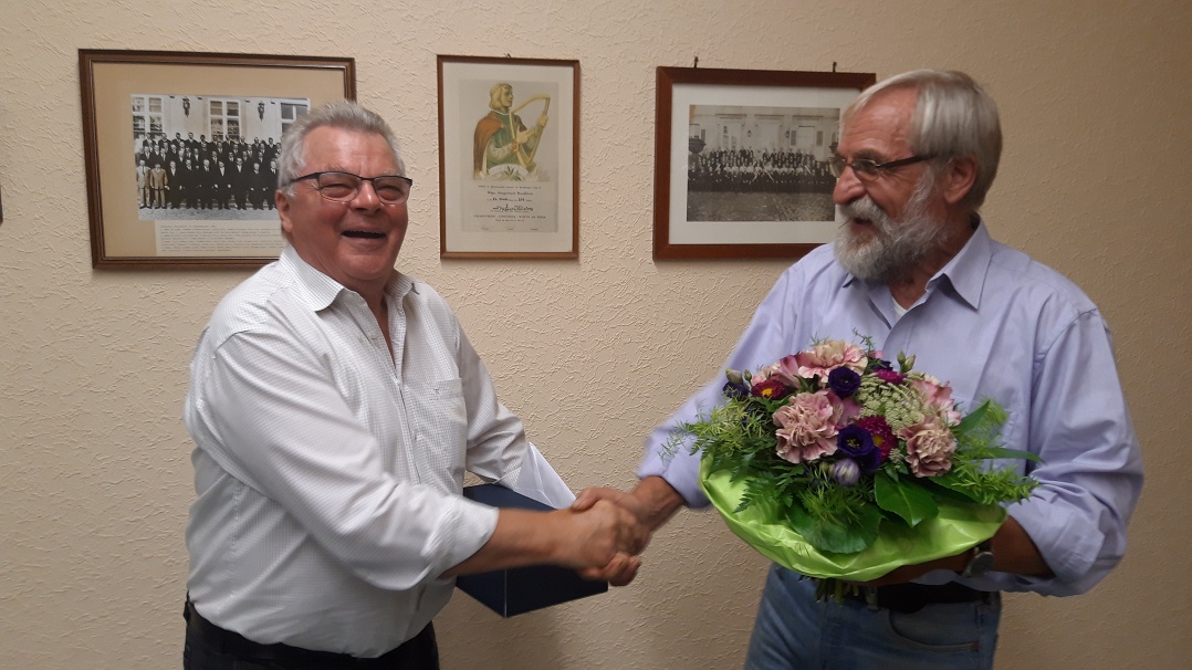 Seine Schaffenskraft lässt nicht erahnen, dass er nun schon 75 Jahre zählen darf. Ihn, der im 2. Tenor des Sängerbundes Bauschlott singt und der sich buchstäblich - und vor allem in den geselligen Runden - Gehör verschafft, feierten nun seine Sängerkameraden am Ende der jüngsten Singstunde mit drei Liedern: "Ihr von morgen", "Träume von Sorrent" und "Amazing Grace". Sängervorstand Peter Zimmermann gratulierte im Namen der Vereinsführung und der Sängerkameraden mit "dem guten Sängerwein" und einem Blumenstrauß. Danach ließ man sich Siedfleisch, Wein und Bier - zu dem Uwe Schubert eingeladen hatte - munden und tauchte wie selbstverständlich in die "alten Geschichten" des Jubilars ein.